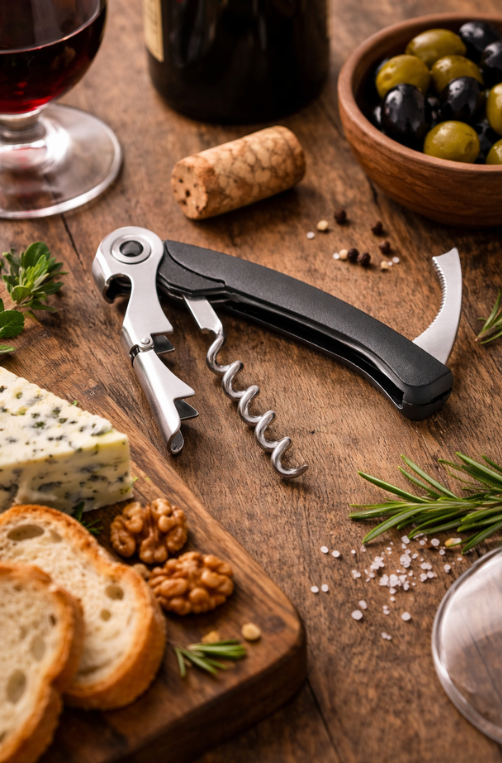 Saca-rolhas em aço inox preto, ideal para abrir garrafas de vinho com praticidade, segurança e eficiência. Fabricado em material resistente e durável, garante fácil higienização e excelente desempenho no uso diário. Seu acabamento preto confere um visual moderno e elegante, perfeito para cozinhas, bares e áreas gourmet.