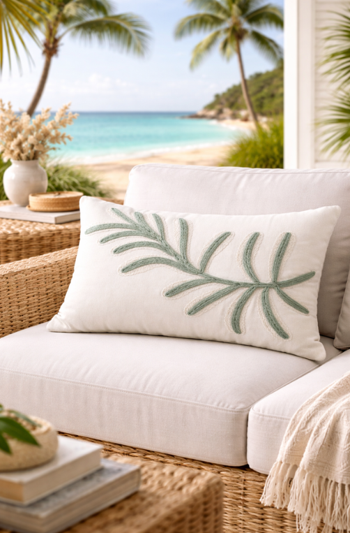 Almofada de Sarja Boucle e Cadarço Leaf