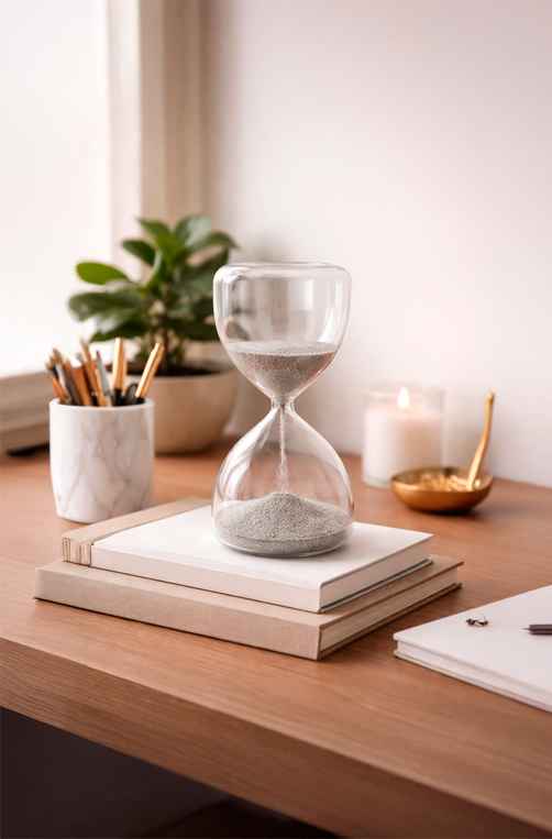 A Ampulheta Decorativa de Vidro com Areia Prata é uma peça sofisticada que une minimalismo e significado na decoração. Produzida em vidro transparente, evidencia o movimento suave da areia em tom prata, criando um efeito visual delicado e atemporal. Ideal para compor estantes, aparadores, mesas de centro ou escritórios, ela se adapta facilmente a ambientes modernos, contemporâneos ou clean. Um objeto decorativo versátil, perfeito para quem valoriza equilíbrio, estilo e detalhes que transformam o ambiente.