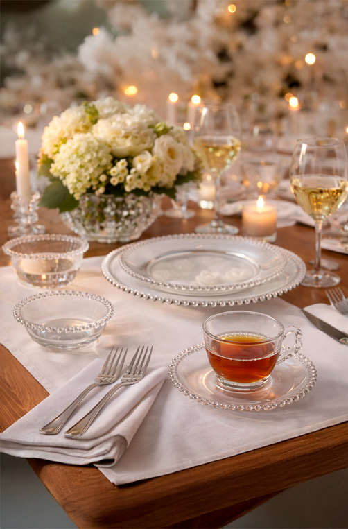 Jogo Jantar Pearl Wolff 20 Peças em Cristal, perfeito para compor mesas elegantes e sofisticadas em qualquer ocasião. Produzido em cristal de alta qualidade, o conjunto possui acabamento delicado em relevo estilo pérola, que valoriza o brilho, a transparência e o design atemporal das peças. Ideal para almoços, jantares e recepções especiais, une requinte e funcionalidade, elevando a apresentação das refeições e harmonizando com diferentes estilos de mesa posta, do clássico ao contemporâneo.