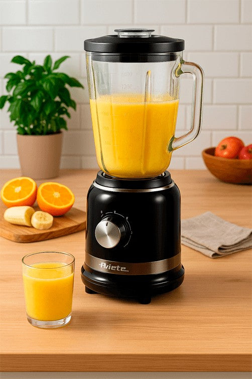Liquidificador Retrô Ariete Preto com Copo de Vidro 1,5L. Potente e elegante, este liquidificador combina design vintage com alto desempenho para preparar sucos, vitaminas, molhos e sopas com facilidade. Seu copo de vidro resistente suporta temperaturas quentes e frias, enquanto as lâminas de aço inox garantem cortes precisos e homogêneos. Ideal para compor uma cozinha funcional e estilosa.