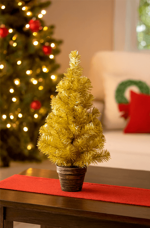 Mini Árvore de Natal com Vaso Dourado, perfeita para compor uma decoração natalina sofisticada e charmosa. Com acabamento brilhante e moderno, traz um toque festivo para mesas, aparadores ou ambientes pequenos, valorizando o clima de Natal com praticidade e elegância.