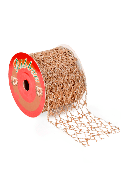 • Fita Natalina Aramada Tela com Glitter Champanhe 5M