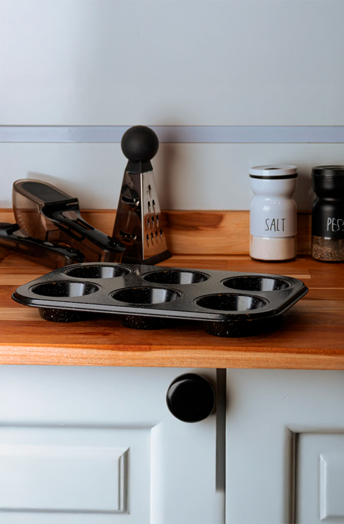 A Forma para Cupcake e Muffin com 6 Cavidades Preta Esmaltada é ideal para preparar cupcakes, muffins, empadas, mini quiches e diversas receitas individuais. Produzida em material resistente com revestimento esmaltado, ela distribui o calor de maneira uniforme, garantindo assados perfeitos e massas mais fofinhas. Seu acabamento preto com efeito pontilhado traz um visual moderno e elegante para a cozinha. Durável, fácil de limpar e prática para o dia a dia, é a escolha certa para quem gosta de confeitar ou cozinhar com qualidade e estilo.