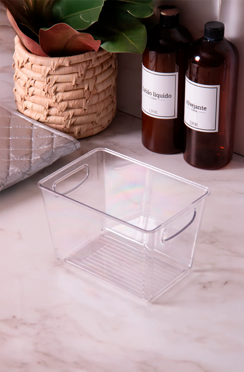 Mantenha cada espaço da sua casa mais prático e funcional com a Caixa Organizadora Transparente com Alças. Fabricada em material resistente e cristalino, ela permite visualizar o conteúdo com facilidade, facilitando a rotina e a organização. Possui alças laterais que garantem transporte seguro e manuseio confortável. Ideal para despensa, cozinha, geladeira, lavanderia, banheiro, closet ou home office, ajudando a otimizar espaços e manter tudo no lugar. Uma solução versátil e durável para quem busca organização inteligente e moderna no dia a dia.
