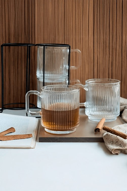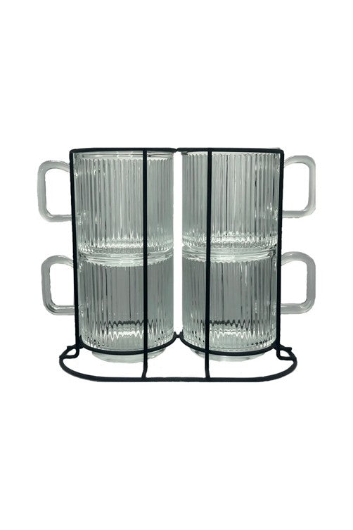 Contêm: 1 Suporte - 4 Canecas Caneladas