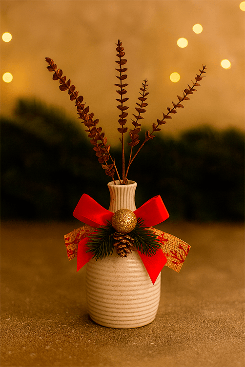 O galho de eucalipto natalino ferrugem brilho é um enfeite sofisticado que acrescenta cor e elegância à decoração de fim de ano. Com acabamento em tom ferrugem e detalhes cintilantes, pode ser usado para compor árvores de Natal, guirlandas, arranjos ou vasos decorativos, trazendo um toque moderno e acolhedor ao ambiente. Sua versatilidade permite criar combinações harmoniosas com diferentes estilos de decoração natalina.