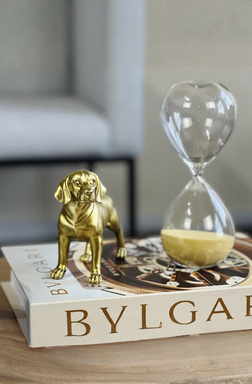 • Escultura de Cachorro Decorativa de Poliresina Dourado