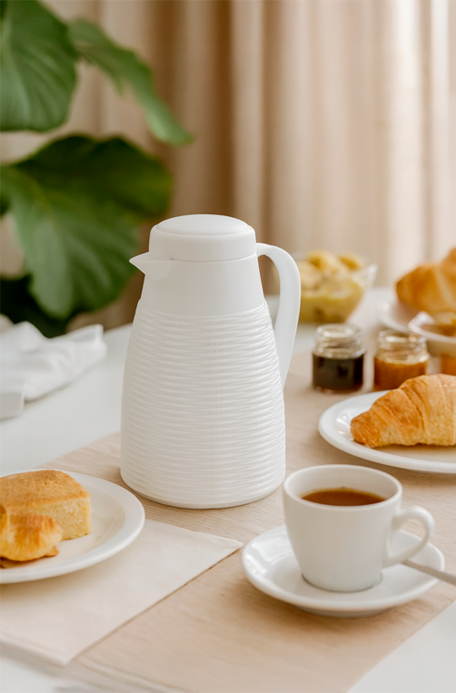 A Garrafa Térmica Rattan 400ml Branca é a escolha perfeita para quem busca praticidade com design moderno. Fabricada em plástico resistente, ela possui textura estilo rattan que traz elegância para a mesa posta do café da manhã, almoços e encontros especiais. Seu interior térmico mantém a temperatura das bebidas por mais tempo, ideal para café, chá, leite e bebidas quentes ou frias.