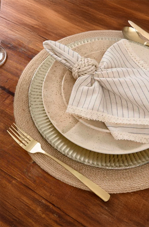 Guardanapo avulso Copa & Cia Bahamas Nassau, ideal para mesas postas com estética natural, leve e elegante. Confeccionado em tecido de qualidade, apresenta padronagem listrada delicada em tons neutros, com acabamento refinado que traz charme discreto à composição. Versátil para o dia a dia ou ocasiões especiais, combina perfeitamente com louças claras, elementos em madeira e fibras naturais, criando uma mesa acolhedora, atemporal e sofisticada.