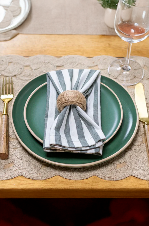 Guardanapo avulso Copa & Cia Eco Listras Floresta, ideal para compor mesas postas com estilo natural e contemporâneo. Confeccionado em tecido de qualidade com visual rústico e padronagem listrada em tons de verde e off-white, traz leveza e personalidade à decoração. Versátil para o dia a dia ou ocasiões especiais, combina perfeitamente com louças neutras, elementos em madeira e fibras naturais, criando uma mesa acolhedora, equilibrada e elegante.