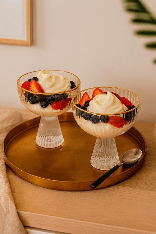 • Conjunto de Taça de Sobremesa em Cristal com FIlete Dourado 2 Peças 200ML