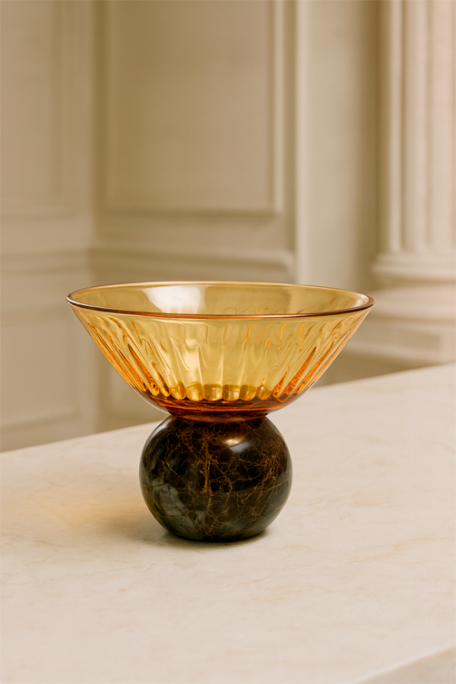 A Taça de Sobremesa em Vidro Epcot Âmbar com Base de Mármore é a peça ideal para quem busca elegância e exclusividade na hora de servir. Com corpo em vidro âmbar translúcido e design facetado característico da linha Epcot, ela oferece brilho, profundidade e um visual moderno que transforma qualquer sobremesa em destaque. A base de mármore natural adiciona um toque nobre, criando um contraste refinado entre textura, cor e material.