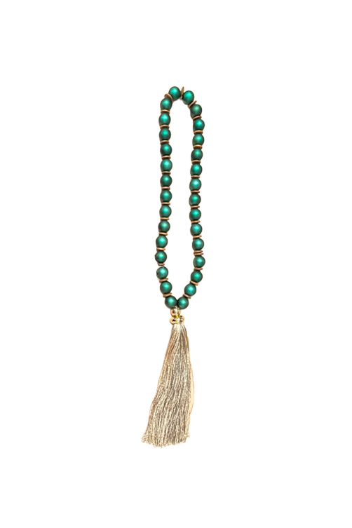 O Colar Decorativo Bola com Franja Verde é uma peça versátil que adiciona charme e personalidade à decoração. Com contas em formato de bola e franja decorativa, valoriza vasos, bandejas, livros decorativos e aparadores com um toque sofisticado.