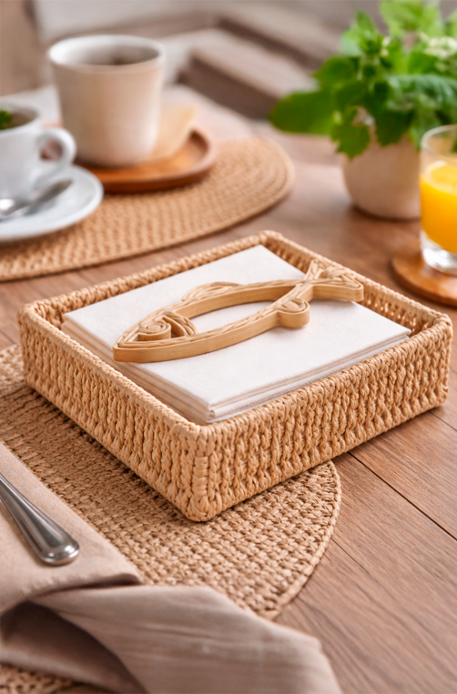 O Porta-Guardanapo de Palha Cestaria Peixe Bege 18x18 cm é a escolha perfeita para quem busca uma mesa posta charmosa, natural e cheia de personalidade. Produzido em fibra sintética trançada, ele traz textura artesanal e acabamento delicado, com detalhe decorativo em formato de peixe que adiciona um toque litorâneo e acolhedor à composição. Ideal para organizar guardanapos de forma prática e elegante, combina perfeitamente com mesas de café da manhã, brunch, almoços leves ou propostas com inspiração natural, rústica ou praia chic. Uma peça funcional que valoriza a decoração e transforma pequenos detalhes em destaque na mesa.