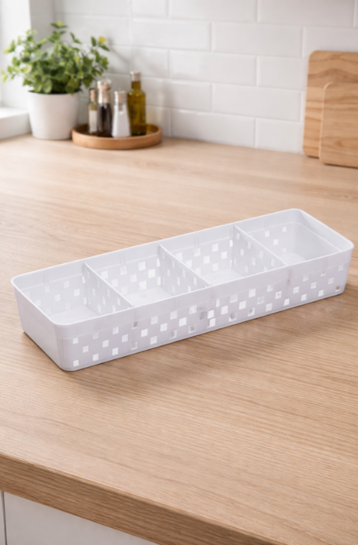 O Cesto Organizador Longo Quadratta com Divisórias 33cm é ideal para organizar itens de forma prática e eficiente. Com formato alongado, design vazado e divisórias internas, facilita a visualização e o acesso aos objetos, sendo perfeito para armários, gavetas, cozinhas, banheiros ou escritórios.