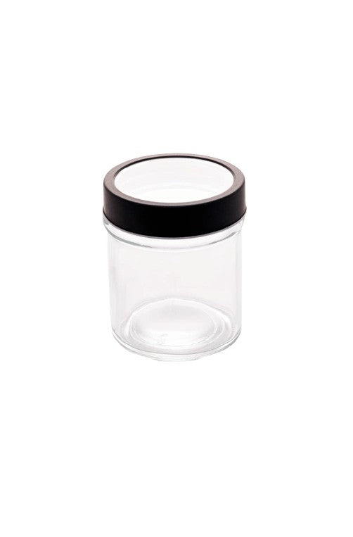 • Pote de Vidro com Tampa em Metal e Acrílico Gastro Preta 350ml