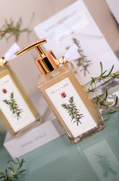 O Sabonete Líquido Alecrim 250ml possui fragrância herbal refrescante que promove uma sensação de limpeza e bem-estar. Sua fórmula delicada limpa as mãos sem ressecar, deixando a pele suave e perfumada. Além disso, a embalagem elegante com detalhes dourados leva charme e sofisticação à decoração do banheiro ou lavabo.