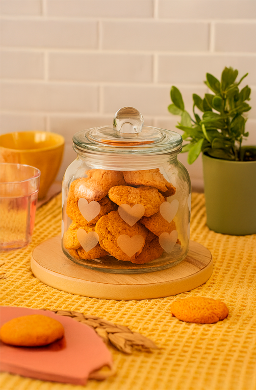 Pote Coração de Vidro com Tampa um charme à parte para organizar e decorar sua cozinha. Produzido em vidro transparente com delicados corações foscos, ele traz um toque romântico e delicado ao ambiente. A tampa com pegador esférico garante vedação prática, mantendo biscoitos, doces, grãos ou pequenos utensílios sempre frescos e protegidos. Versátil e decorativo, é ideal para deixar exposto na bancada, no cantinho do café ou dentro de prateleiras organizadas. Uma peça funcional que transforma a rotina com estilo e carinho.