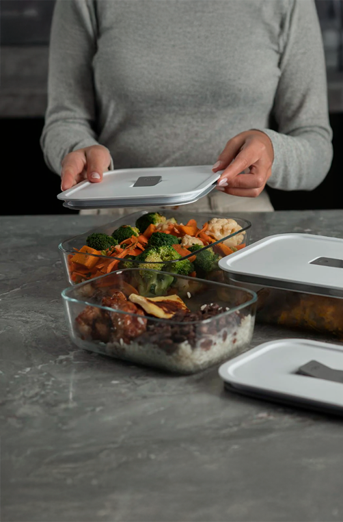 O pote de vidro hermético da Linha Fresh Lock acompanha você em todas as etapas no preparo das refeições, suportando temperaturas de até 220°C no forno ou air fryer e -20°C no freezer. Feito de material que evita manchas e odores, é a uma escolha durável e segura para armazenar alimentos. Proporciona uma jornada completa desde o preparo até o armazenamento facilitando seu dia a dia na cozinha