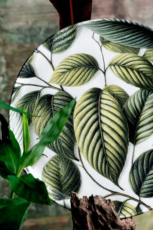 O Stoneware Éden, é uma peça inovadora e sustentável, onde a combinação das melhores matérias primas naturais, unido a um processo único de queima e acabamento manual, entregam um produto com características superiores em termos de qualidade e resistência. Este modelo entregam desenhos de folhas intensas, traz um estilo natural