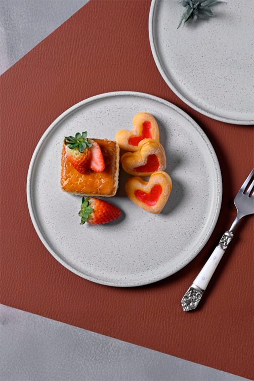 Cuidado: para garantir a durabilidade da cerâmica e manter o acabamento, lave o prato com detergente neutro e esponja macia, evitando produtos abrasivos e choques térmicos.