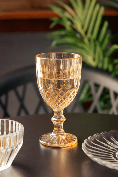 O Conjunto de 6 Taças Greek 320ml Âmbar Metalizado em Vidro é a escolha perfeita para quem deseja unir requinte e modernidade na mesa posta. Produzidas em vidro de alta qualidade, apresentam acabamento âmbar metalizado que proporciona um visual sofisticado e elegante. Com capacidade de 320ml, são ideais para servir vinhos, espumantes, drinks ou até mesmo água em ocasiões especiais, trazendo charme e estilo para recepções, jantares e comemorações.