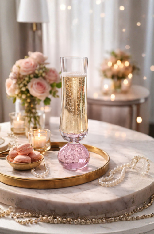 • Conjunto 6 Taças de Champanhe Esfera Bubble Pink 240ml