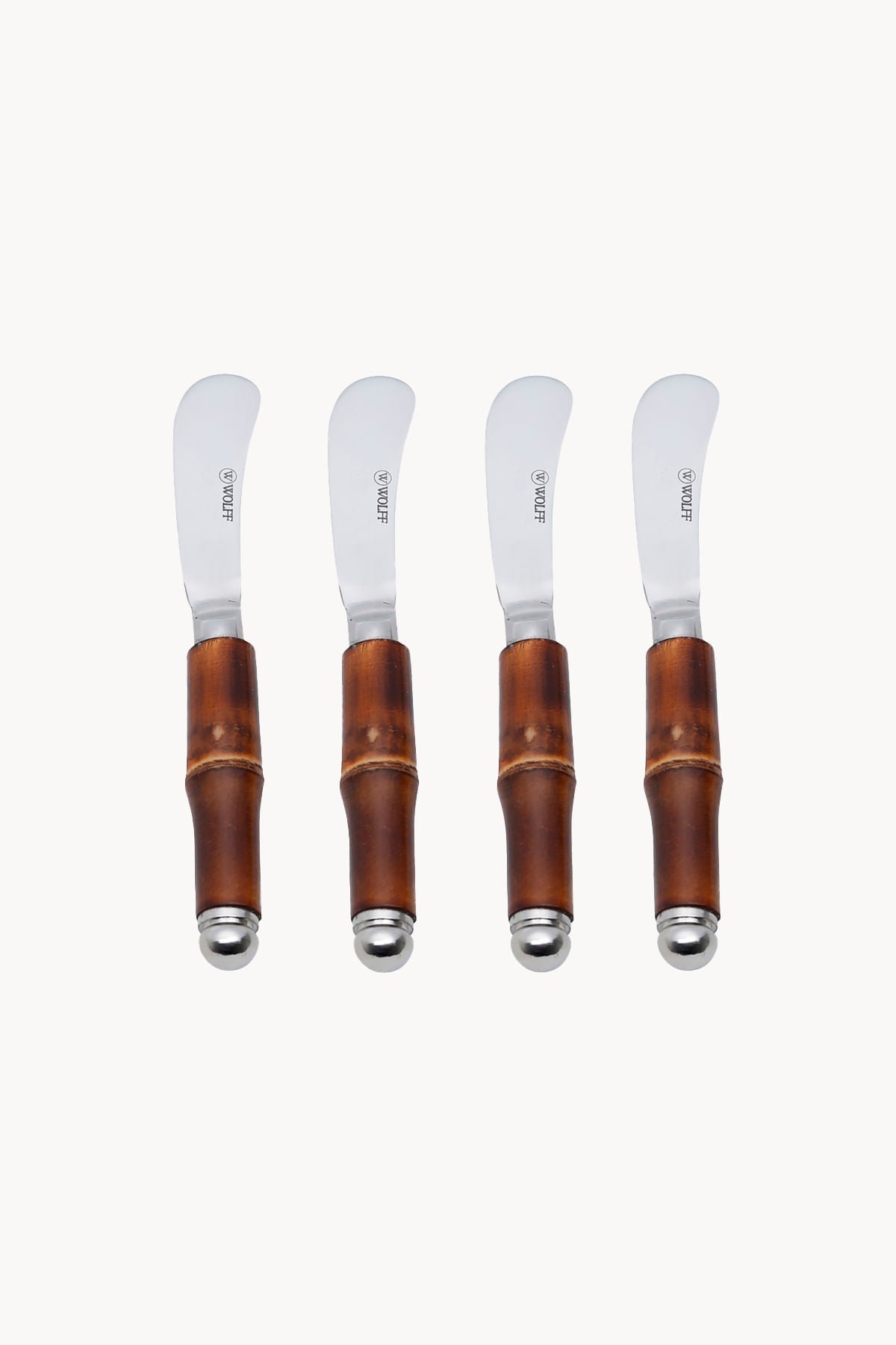 Conjunto de Espatulas em Aço Inox com Cabo em Bambu 4 Peças