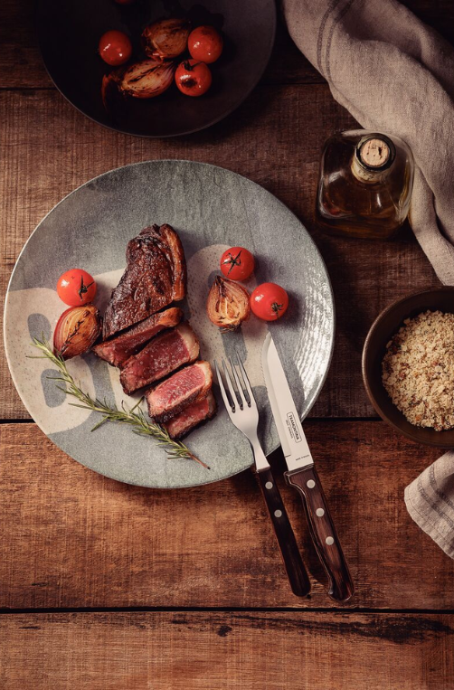 Robusto e elegante, o Conjunto de Talheres Jumbo em Aço Inox com Cabos de Madeira Polywood Castanho é ideal para servir carnes e porções maiores com praticidade e estilo. Produzidos em aço inox de alta qualidade, os talheres oferecem resistência e durabilidade, enquanto os cabos em madeira Polywood garantem conforto, segurança e um visual sofisticado. Perfeito para churrascos, refeições especiais e uso diário.