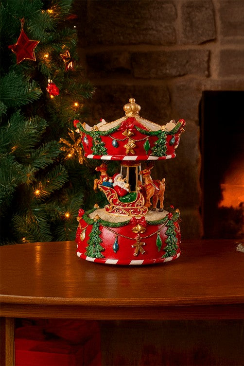 Encante sua decoração de fim de ano com o Carrossel Musical Natalino, um item decorativo sofisticado que combina tradição e elegância, ideal para criar uma atmosfera mágica e nostálgica em seu lar.