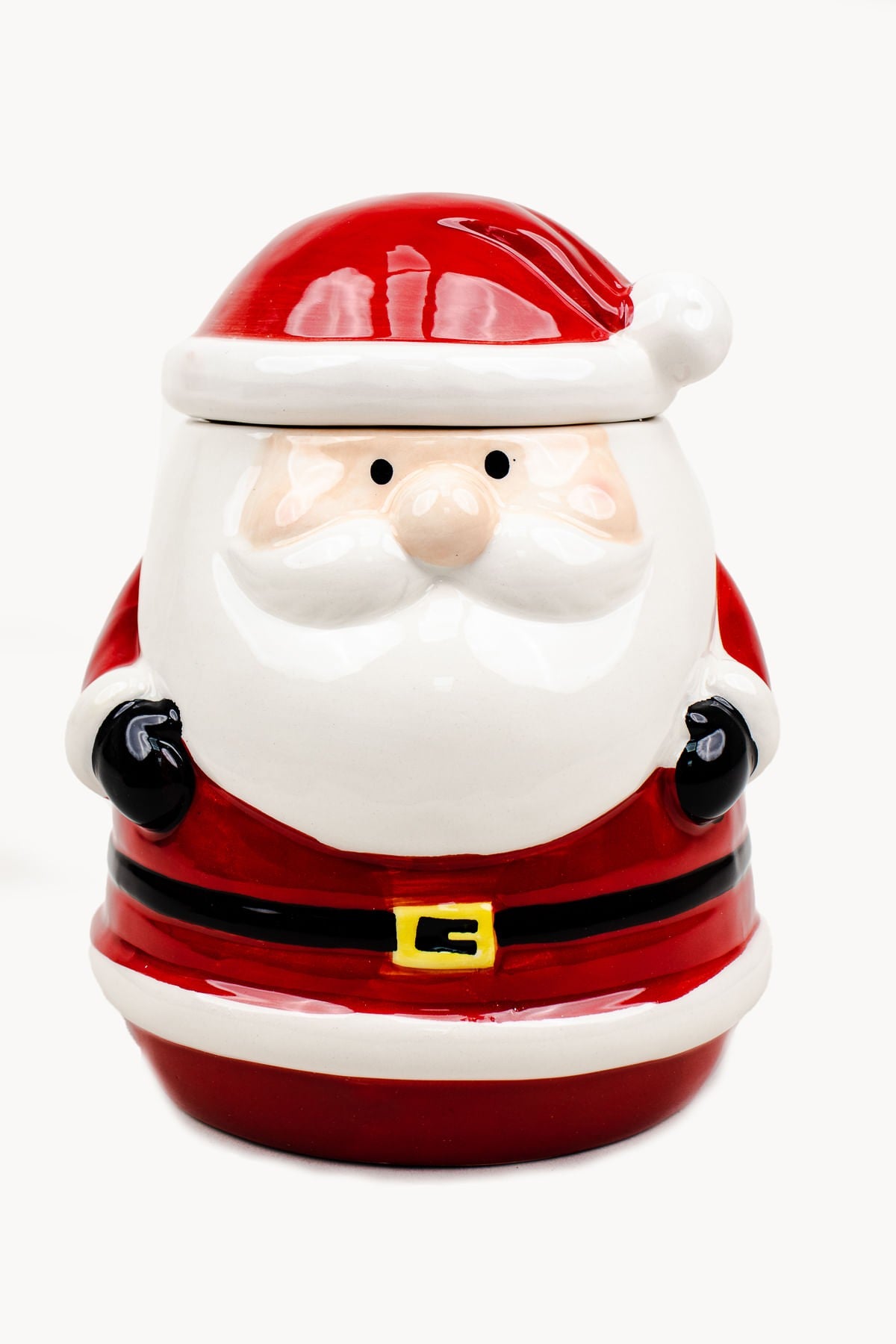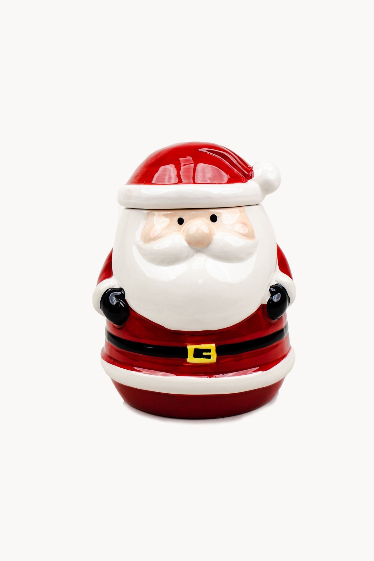 Potiche de papai noel em cerâmica com tampa removível.