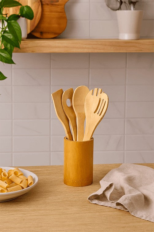 Conjunto de Utensilios em Bambu 6 Peças