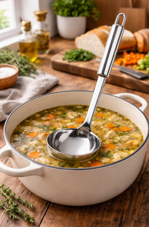 A Concha Terrina Top Pratic em Aço Inox é um utensílio resistente e funcional, ideal para servir caldos, sopas e outras preparações com facilidade e precisão. Feita em aço inoxidável de alta qualidade, oferece durabilidade, resistência à corrosão e limpeza prática. Seu cabo ergonômico proporciona conforto e firmeza ao manusear, enquanto sua capacidade atende bem porções generosas.