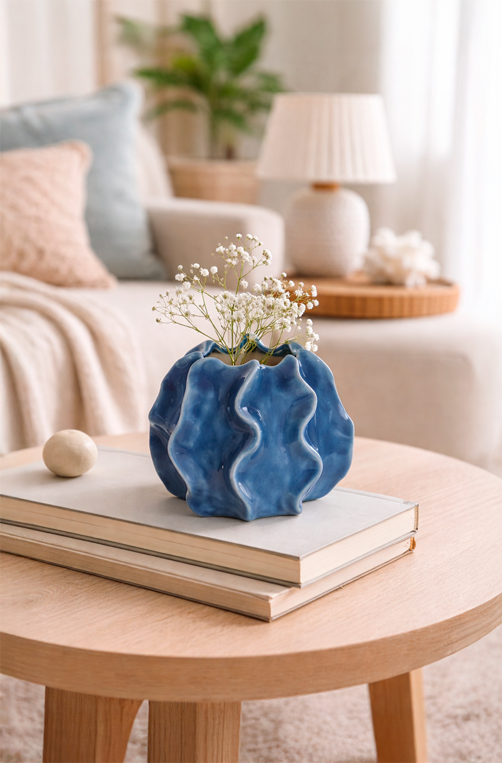 O Vaso Decorativo em Cerâmica Azul com Formas Orgânicas é uma peça de destaque que adiciona personalidade e movimento à decoração. Com design escultural e acabamento esmaltado em tom azul profundo, suas curvas orgânicas criam um efeito visual artístico e contemporâneo. Ideal para compor estantes, aparadores, mesas ou nichos, o vaso pode ser usado sozinho ou com arranjos secos, valorizando ambientes modernos, criativos ou sofisticados. Uma peça decorativa marcante, perfeita para quem busca arte, estilo e originalidade no décor.