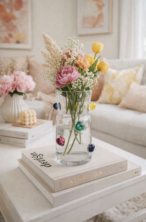 O Vaso em Vidro Dots em Alto Relevo Colorido traz cor, textura e personalidade para a decoração. Com detalhes em alto relevo e visual moderno, valoriza aparadores, estantes e mesas com um toque criativo e sofisticado.