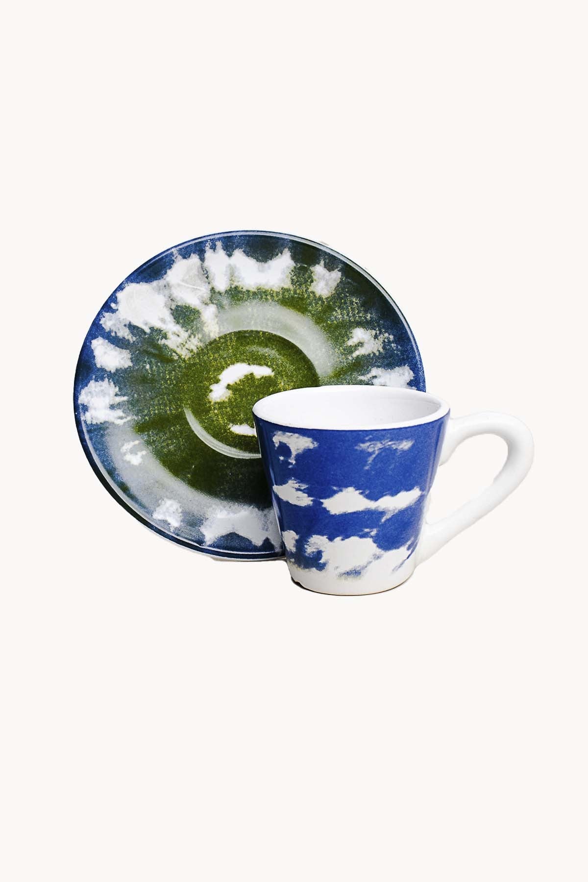 • Xícara de Café Tie Dye com Pires em Cerâmica