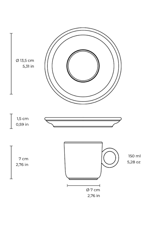 Cuidado: para preservar a porcelana e manter o acabamento, lave a xícara e o pires com detergente neutro e esponja macia, evitando produtos abrasivos e choques térmicos.