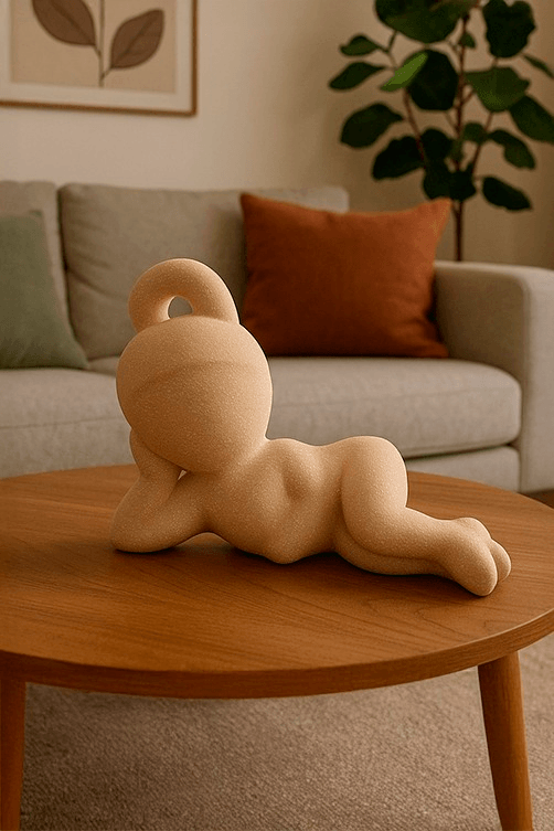 Uma peça delicada e encantadora, esta escultura representa uma menina deitada em uma posição relaxada, esculpida em dolamite com textura suave e acabamento fosco. Seu design minimalista, sem detalhes faciais, foca nas formas orgânicas e naturais, criando uma atmosfera de tranquilidade e contemplação. A alça esculpida na parte superior da cabeça adiciona um toque de originalidade e modernidade, destacando a peça como um elemento de destaque em qualquer ambiente. Ideal para compor decorações de salas, escritórios ou áreas de leitura, a escultura Menina Deitada traz um toque de serenidade e sofisticação ao espaço.