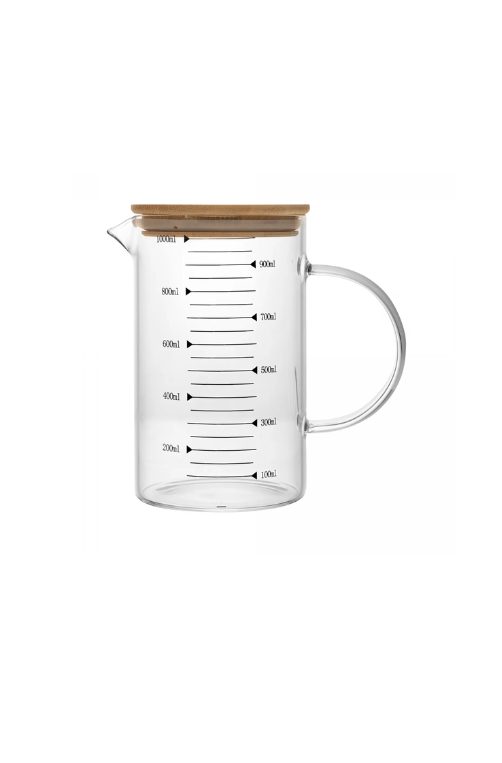 A Jarra Medidora com Tampa de Bambu 1L é prática, resistente e perfeita para quem ama precisão na cozinha. Fabricada em vidro borossilicato, ela suporta variações térmicas e vem com marcações em ml para facilitar o preparo de receitas doces ou salgadas. A tampa de bambu dá um toque natural e moderno ao design, tornando-a ideal para armazenar líquidos com estilo.