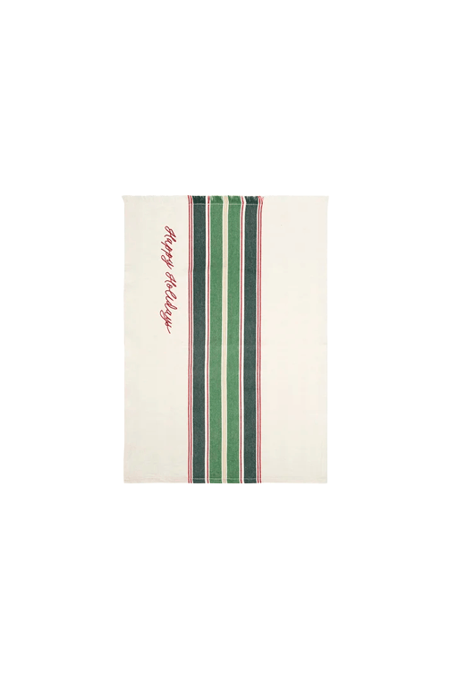 O pano de copa Copa & Cia Natal Happy Holidays traz o espírito natalino para a sua cozinha com elegância e funcionalidade. Produzido em algodão de alta qualidade, ele possui excelente absorção e toque suave, ideal para o dia a dia. O design combina listras verdes e vermelhas com a frase bordada ¿Happy Holidays¿, criando um visual festivo e sofisticado.