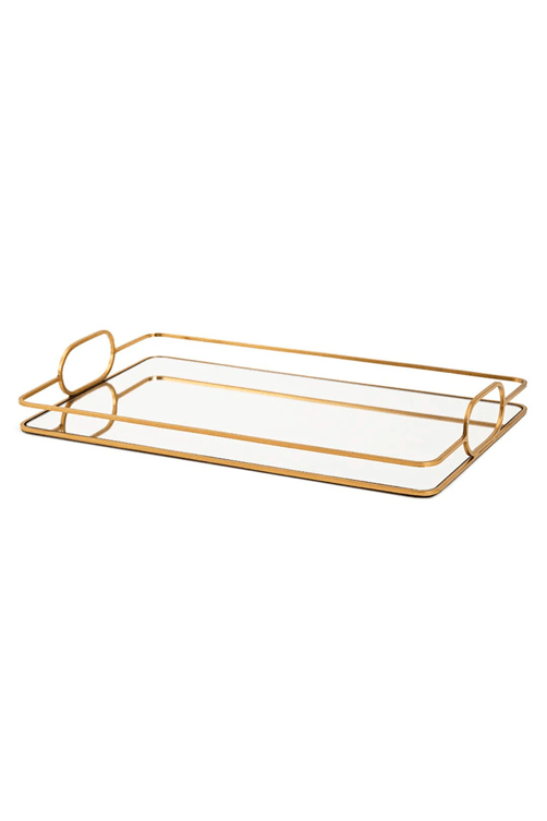 Bandeja Média em Metal Dourado com Espelho Minimalista