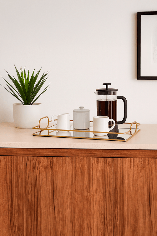 • Bandeja Média em Metal Dourado com Espelho Minimalista