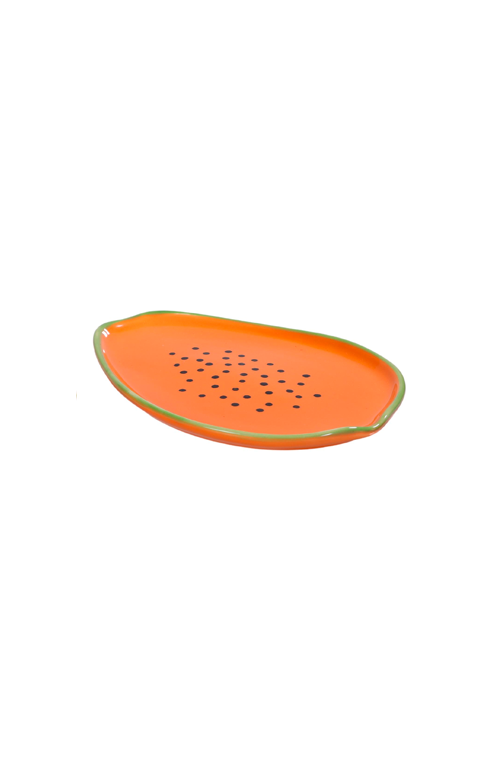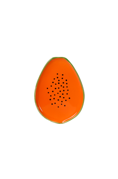 Leve mais cor, leveza e personalidade para a sua decoração com a bandeja decorativa em cerâmica formato mamão. Com acabamento esmaltado em tom laranja vibrante, borda verde e detalhes pintados à mão, essa peça une design criativo e estilo tropical, perfeita para compor mesas postas, servir frutas, petiscos ou valorizar aparadores e bancadas. Ideal para quem busca decoração divertida, moderna e cheia de charme, a bandeja mamão é uma escolha versátil que transforma qualquer ambiente com frescor e originalidade.