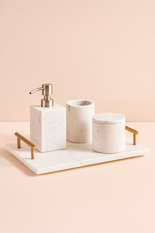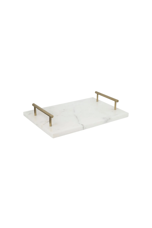 A bandeja decorativa em mármore branco com alça dourada é uma peça refinada que une sofisticação e funcionalidade. Ideal para servir bebidas, cafés ou organizar perfumes e objetos decorativos, ela valoriza a composição de mesas, aparadores e buffets. O mármore branco acrescenta um toque luxuoso e atemporal, enquanto a alça dourada proporciona praticidade e elegância, tornando a peça perfeita para ocasiões especiais ou para compor a decoração do dia a dia.