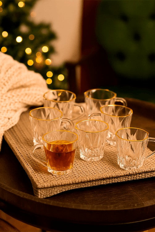 Conjunto de Xícaras Diamond em Cristal com Filete Dourado 6 Peças180ML