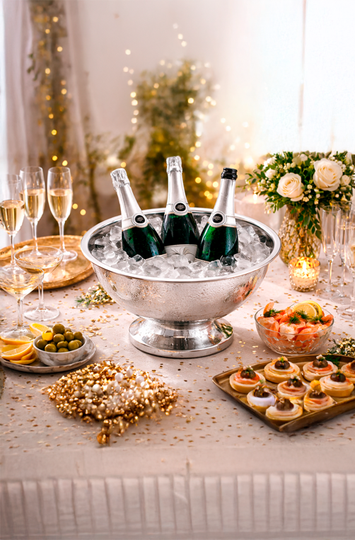 Com design clássico e acabamento metálico refinado, ela valoriza a apresentação de espumantes, champanhes, vinhos e bebidas geladas, tornando qualquer ocasião ainda mais especial.