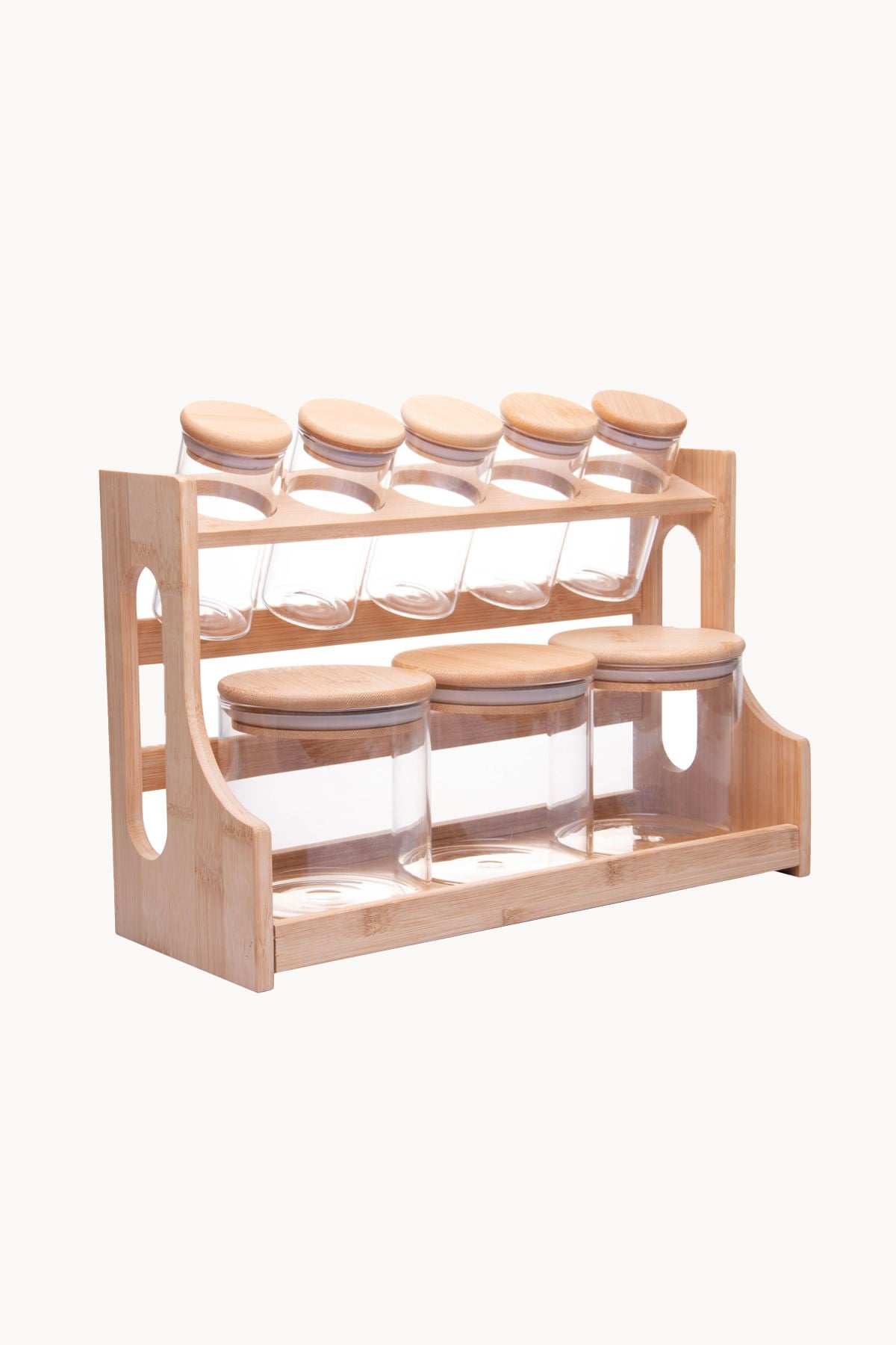 Conjunto de Potes em Vidro com Tampa e Rack em Bambu