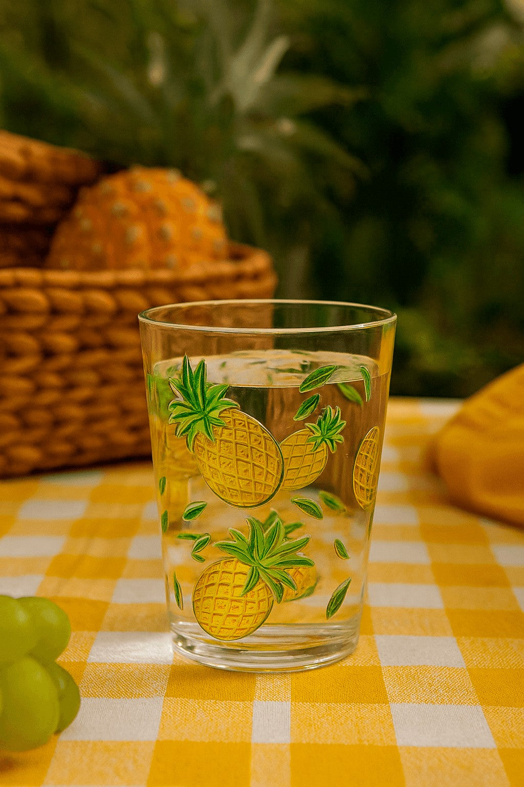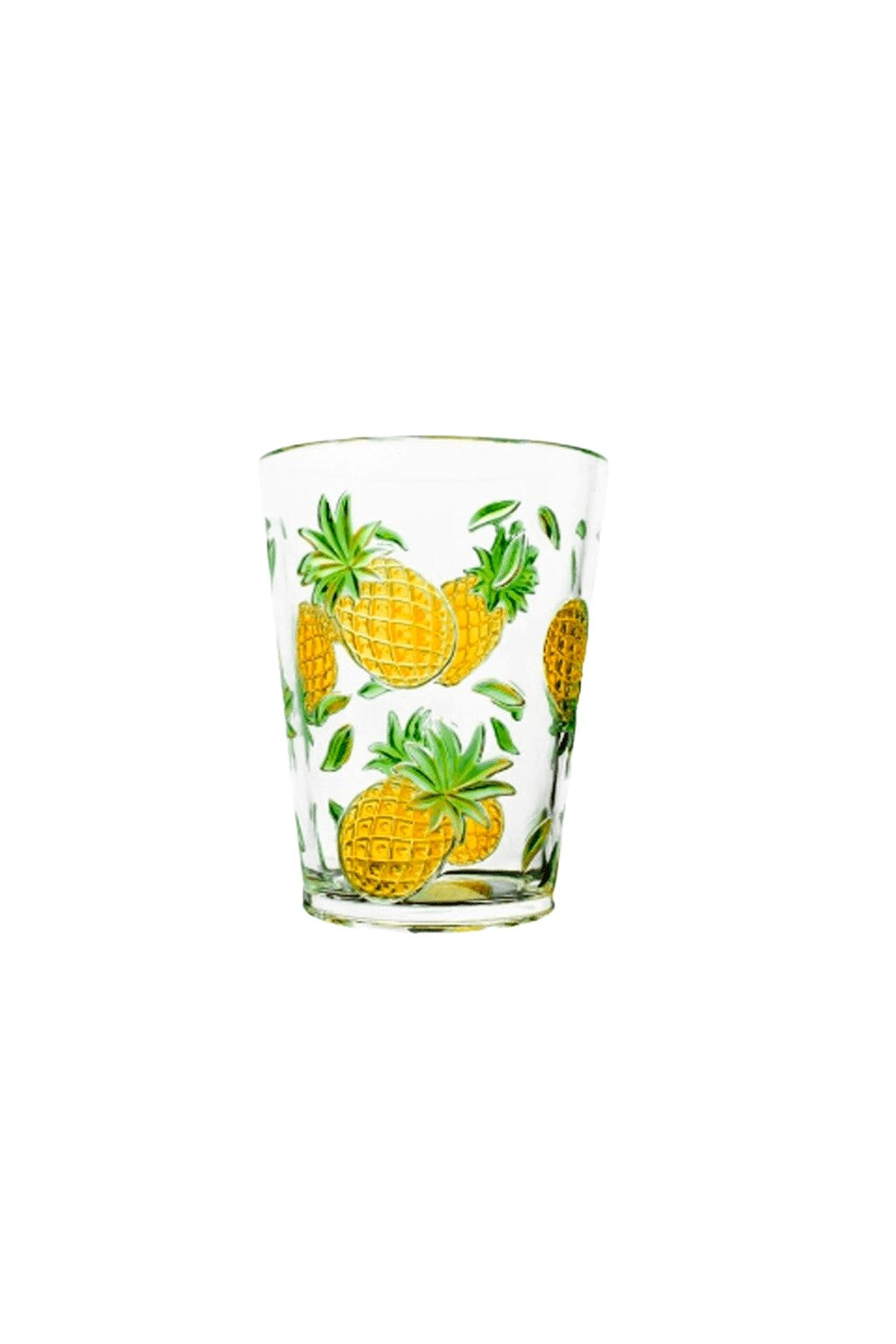 Copo de acrílico transparente de 400ml com estampa de abacaxi em relevo. Ideal para servir água, sucos ou drinks em momentos descontraídos, trazendo frescor e estilo tropical para sua mesa. Resistente e prático, combina com mesas de verão, festas temáticas ou uso no dia a dia.