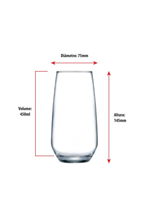 Copo Emerald Long com capacidade de 450ml, produzido em vidro de alta resistência, prático e de fácil limpeza. Sirva seus clientes com muito mais charme e elegância. Pois, possuem design moderno e refinado de altíssima qualidade que vão transformar o ambiente de seu estabelecimento. Importado diretamente da Europa em uma das mais conceituadas fábricas do seguimento de vidro.
